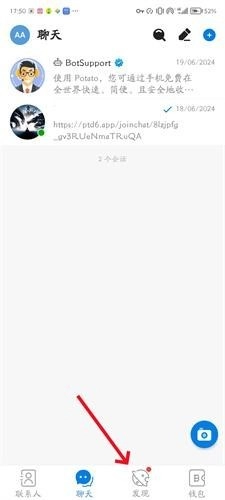 1、启动Potato应用进入首页后,点击底部导航栏的“发现”按钮。