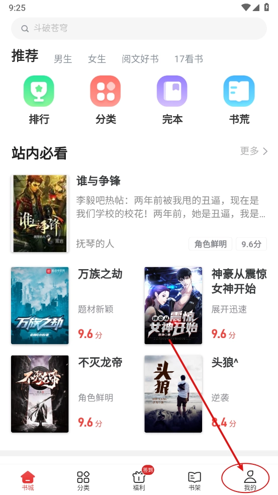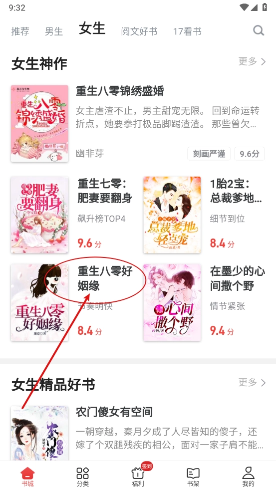 1、进入书城里面选择喜欢的小说资源,一键打开。