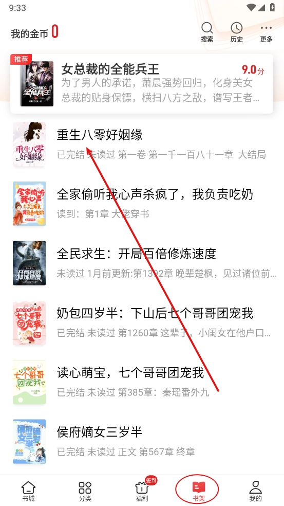 3、最后进入书架板块,即可看到加入的目标小说了。