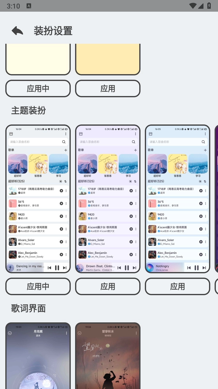 软件支持从主题风格到歌词界面等多方面的个性化设置,用户可以根据需求选择不同样式进行自定义调整。