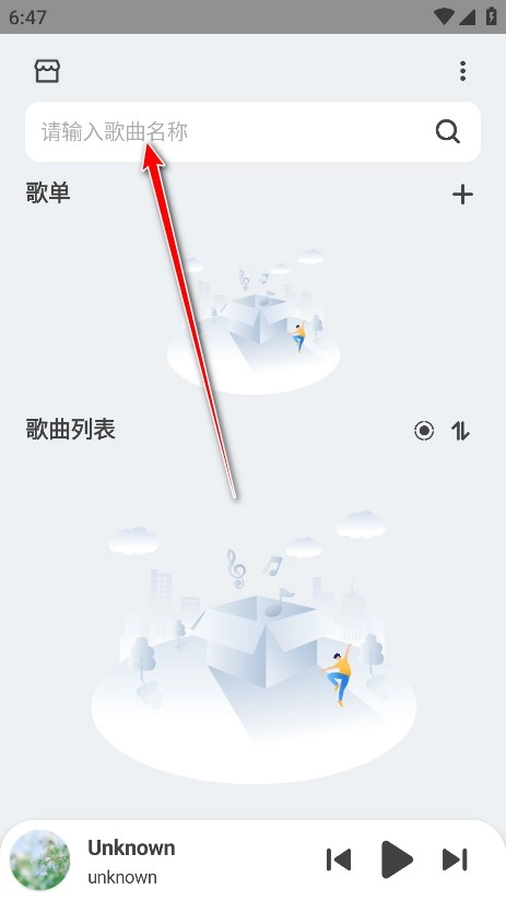打开萌虎音乐,点击搜索框,输入关键字即可搜索歌曲。