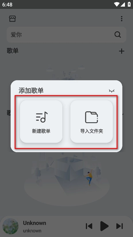 这款软件具备新建歌单与导入文件夹的功能,接下来我就以点击导入文件夹的操作为例进行说明。