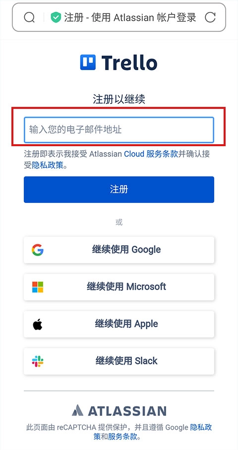 1、首先打开Trello,点击“注册”。