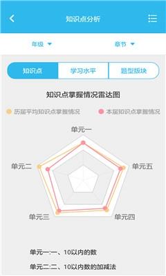 查看全区各学校及各年级关于章节知识点掌握情况的雷达图