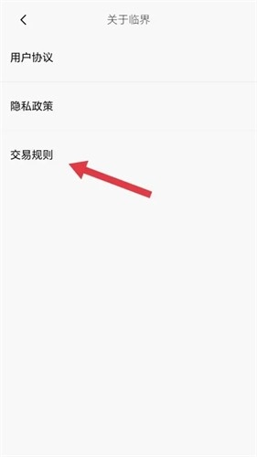 4、在【关于临界】界面,找到【交易规则】选项,点击即可查看详细内容。