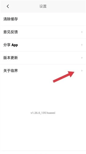 3、在设置页面中,找到【关于临界】选项,点击打开。