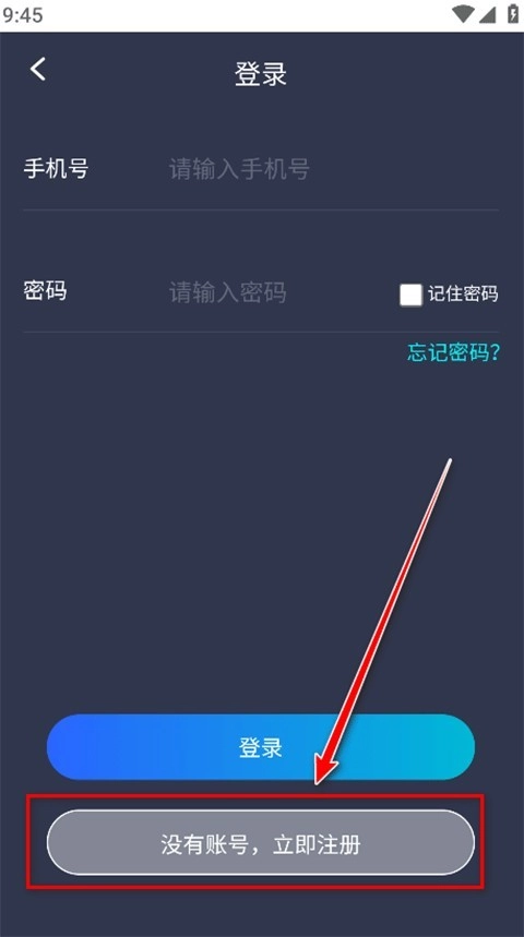 2、进入登录界面后,新用户可点击底部的“没有账号,立即注册”选项。