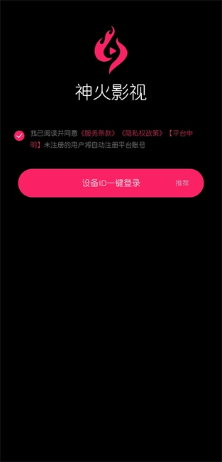 打开神火影视,先勾选协议,再点击“设备ID一键登录”按钮,就能进入软件了。