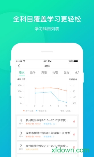成绩报告:通过深度的数据挖掘,剖析知识点的掌握情况,进行进退步趋势分析,助力考生在考后实现针对性的提优补差。