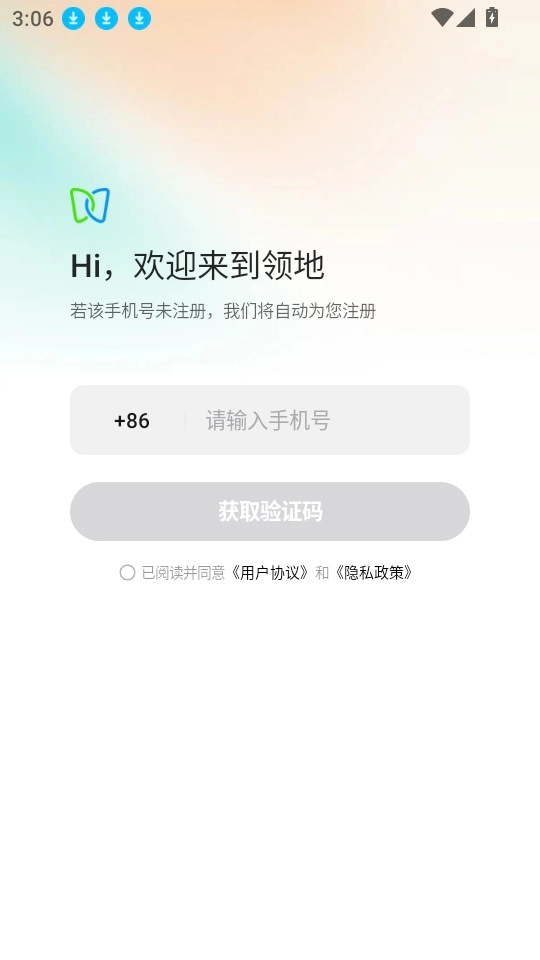 2、之后进入登录界面来输入手机号,点击“获取验证码”按钮来输入验证登录。