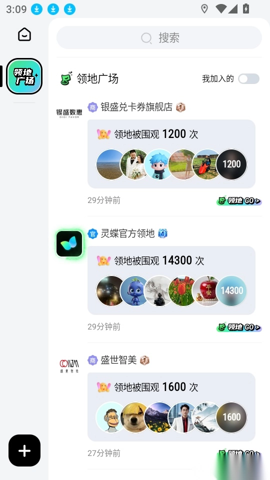 5、这样就可在领地广场中来筛选相关的领地社群,点击感兴趣的“领地社群”来实时进入。