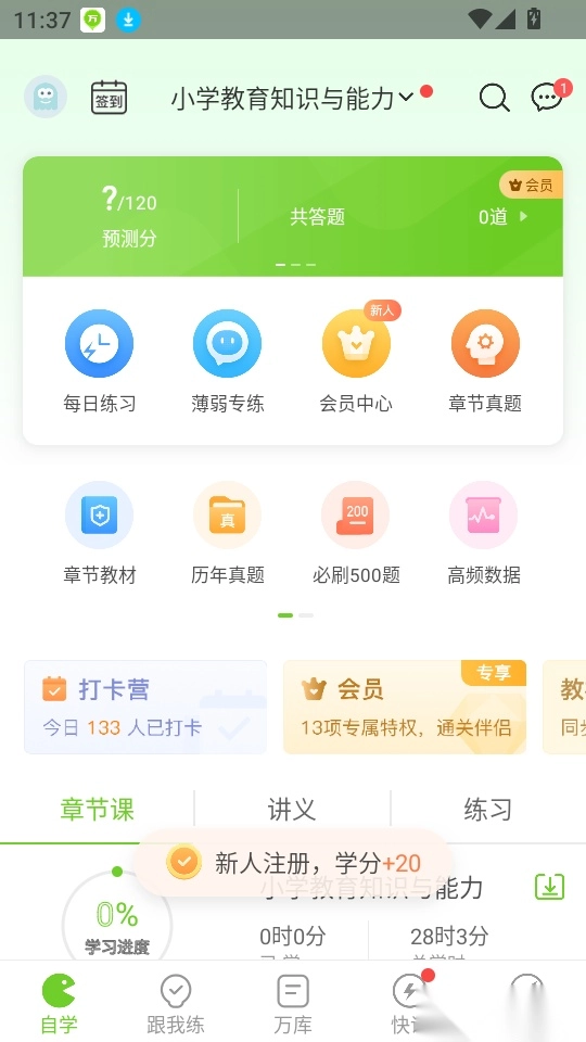 教师资格万题库是一款专注于教师资格证考试的刷题工具,平台整合了丰富的免费题库资源,涵盖教育部教师考试的全部官方题库内容,支持用户免费进行历年真题、模拟试题、章节专项等多种类型的练习,帮助用户高效刷题,快速掌握核心知识点,轻松应对备考。此外,平台还为用户提供免费的视频学习服务,不仅有清晰的高清录播课程可供随时观看,还能直接参与名师直播课,实时互动答题,深化知识点理解;同时,软件还设有线上模考大赛,用户可通过模拟测试直观检验学习成果。备考教师资格证的用户,不妨来这里开启练习吧!