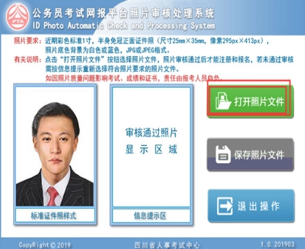 首先要打开照片文件,需要注意的是,该文件的格式必须是JPG,同时照片的底色要求为白底或者蓝底。