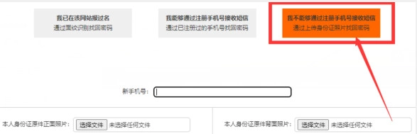 输入新的手机号码,上传身份证正反面照片,点击提交后就能获取新密码,登录时用户名可以填写身份证号码或者手机号码。