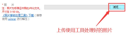 最后回到报名信息表的填写页面,接着上传已经处理好的照片,需要注意的是:要使用谷歌浏览器。