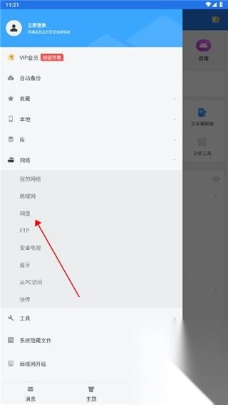 在侧边栏点击“网络”按钮,接着在展开的“网络”选项里选择“网盘”,就能查看百度网盘中的文件内容了。