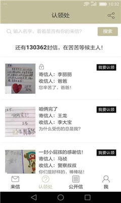 若因与对方失去联系或其他缘由,不清楚对方的手机号码,信件就会进入认领处,等候认领。