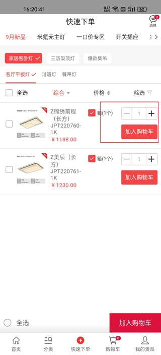 点击快速下单菜单