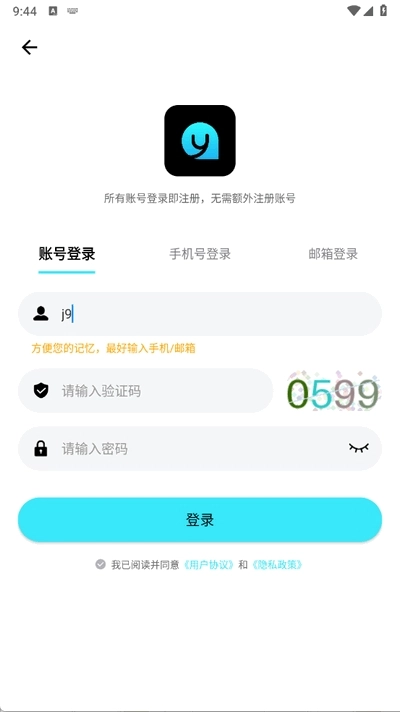 2、可选用账号、手机号、邮箱进行注册