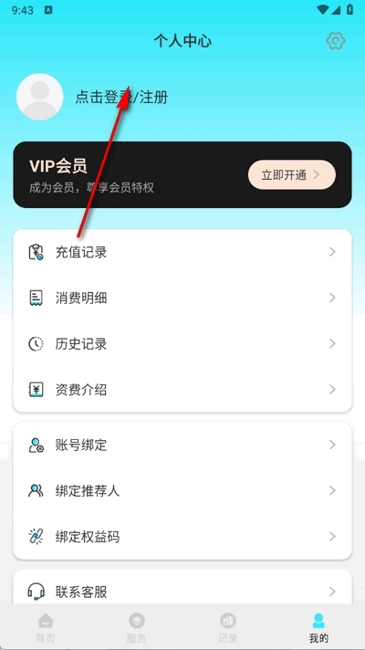 1、在我的中点击登录/注册