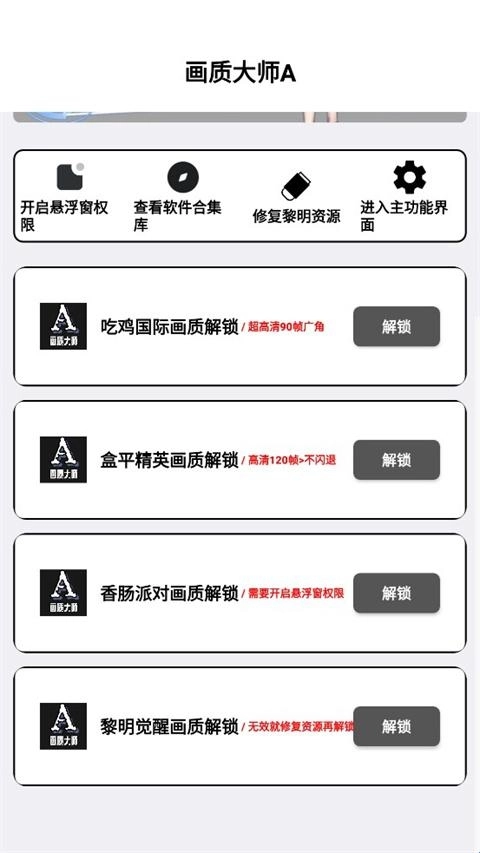 画质大师A是一款辅助工具,能帮助用户一键调整游戏画质。它深度适配游戏特性,采用先进的图像处理技术,可解锁最高帧率,增强游戏画面的清晰度与流畅度,为用户带来更优质的游戏体验。