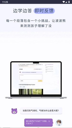 2.好奇激发工具:波波熊学伴会鼓励孩子积极提问、主动探索,以此来培养他们的主动学习能力。