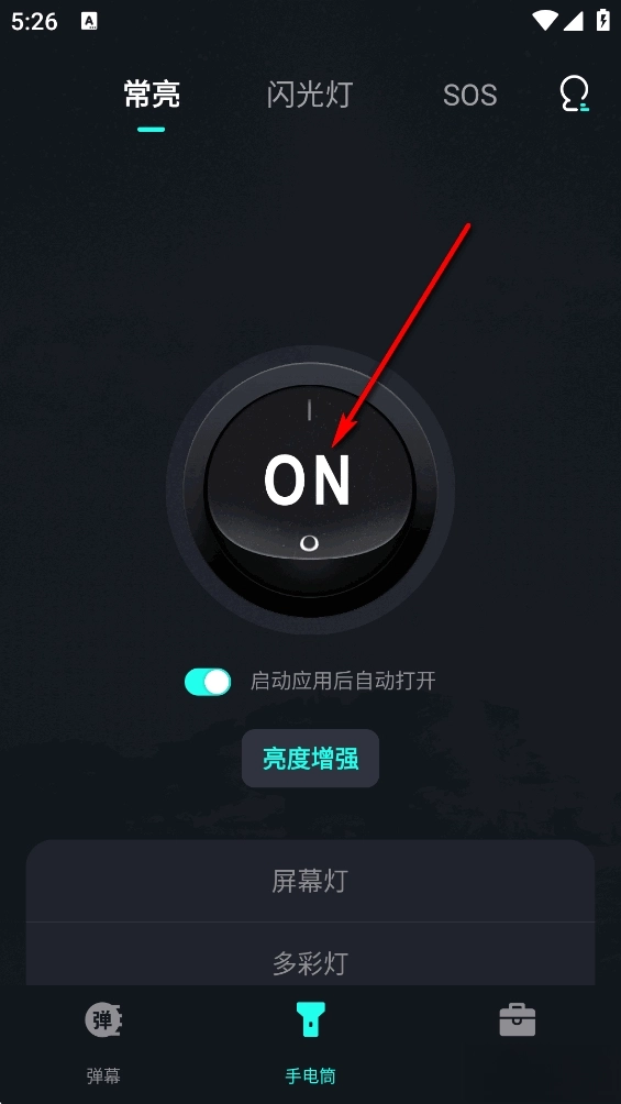 显示【ON】即将手电筒打开