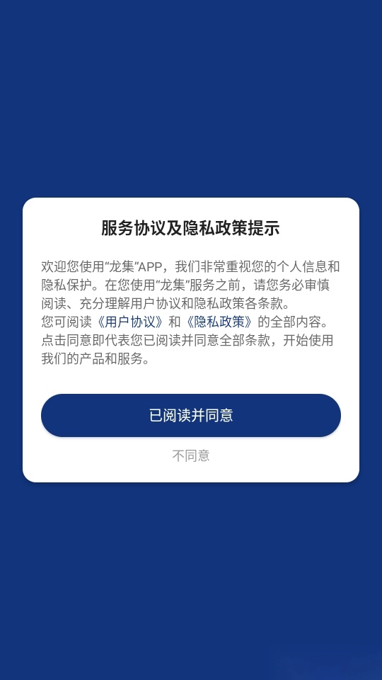 1. 启动软件后,仔细阅读“服务协议及隐私政策提示”,随后点击“已阅读并同意”按钮进入应用。