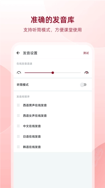 西语整句翻译发音功能,且支持语音输入查询;