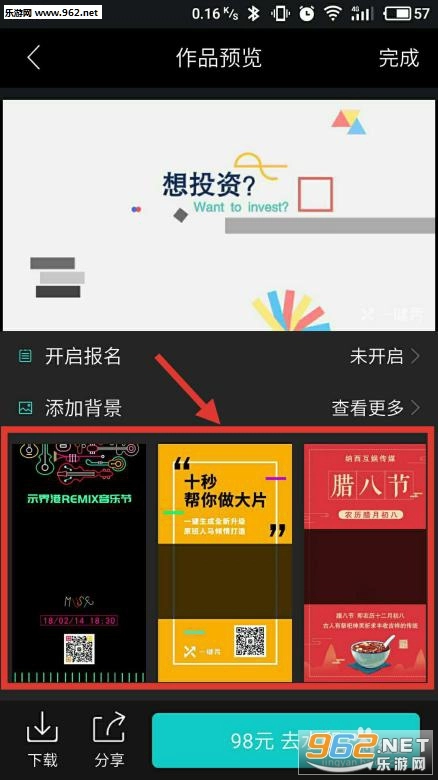 点击“添加背景”、为你的作品添加背景。