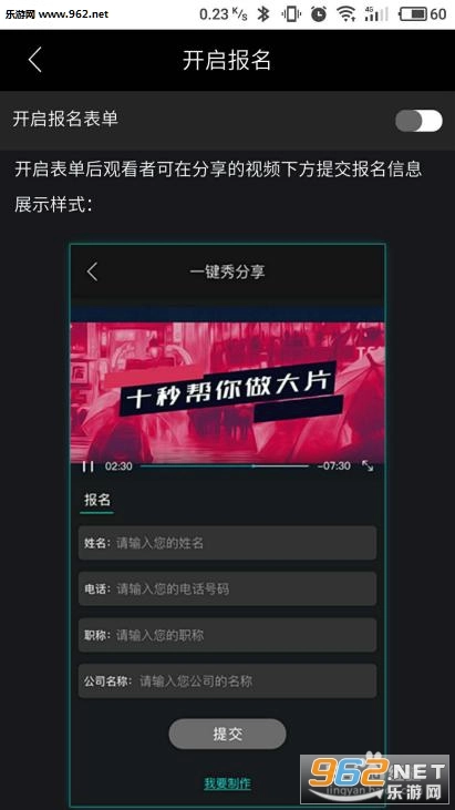 开启表单功能后,观看者能够在视频下方提交报名信息。
