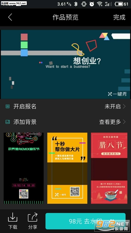 视频制作点击喜欢的视频模版,进入预览页面