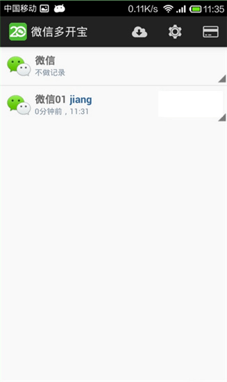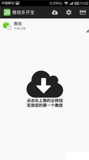 打开微信多开宝,点击右上角的云形按钮,安装您的首个微信账号(若您有多个微信账号,可重复此操作添加对应数量的微信)。