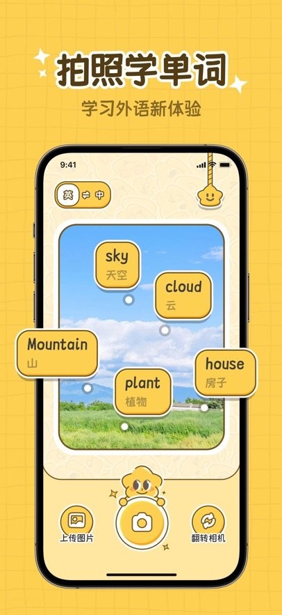 拍照识词:只需拍摄一张照片,就能迅速识别新单词,并学习其释义、发音与例句。