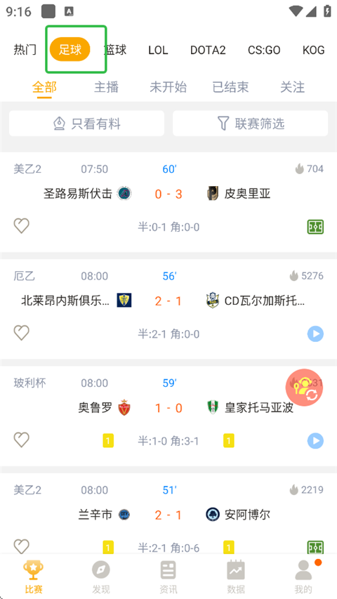 3、不同热门比赛都能在这里轻松观看,实时更新最新比赛情况,加之流畅的直播服务,让用户可以畅享热血竞赛实况。