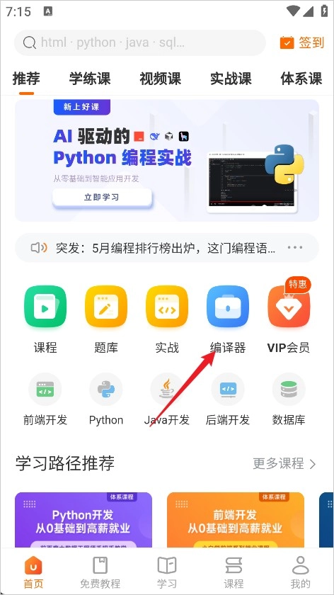 1、进入软件后在首页位置选择编译器