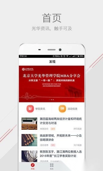 光华MBA是为近万名北大光华MBA校友打造的专属,让校友们真正体会"一入光华门,一生光华人"的校友终身服务平台。