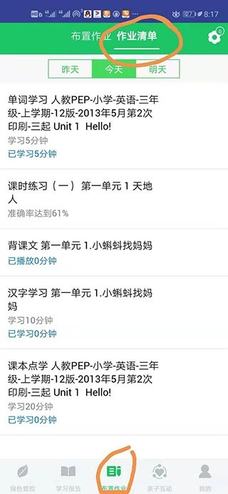 4、小朋友完成作业后,家长可再次打开作业布置界面,点击上方的作业清单,就能查看孩子的作业完成情况了。
