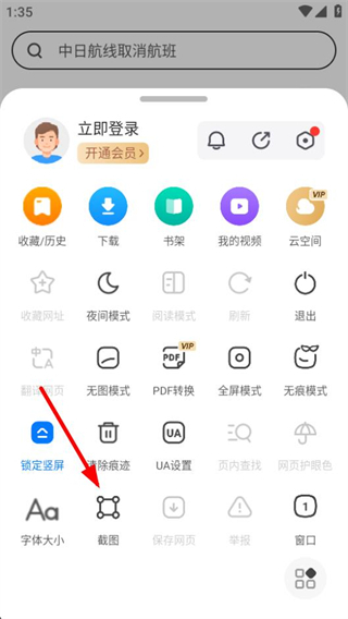 进入功能菜单页面后,点击截图选项,即可触发截图操作界面。