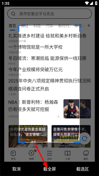 3、进入截图界面后,选择截全屏的选项,就能对当前页面执行全屏截图操作。