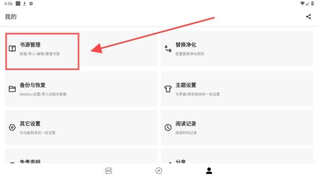 接着选择【书源管理】进入