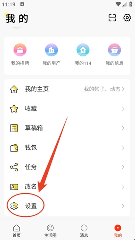1、在“我的”页面最下面找到“设置”,点击进入。