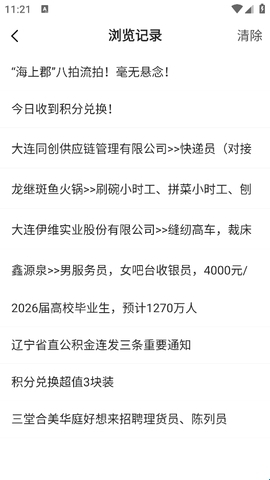 3、点击进入就能查看所有浏览记录,右上角还能清除记录。