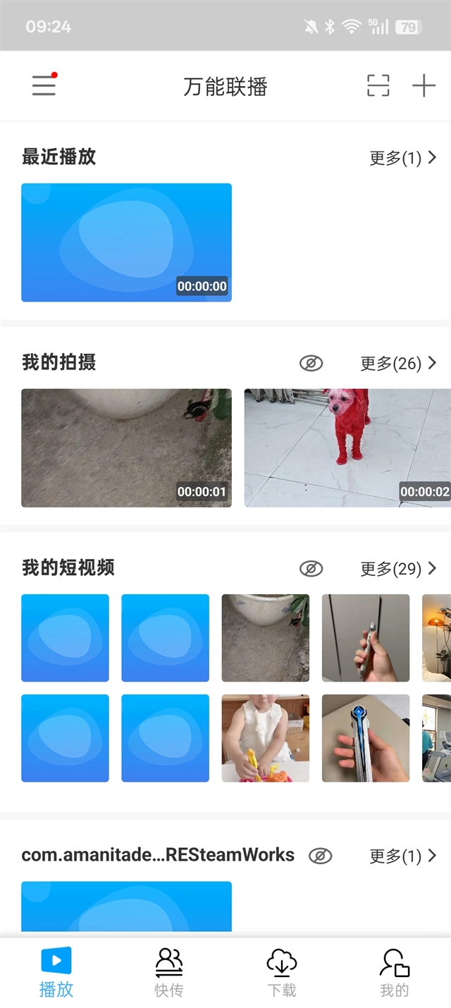 在软件首页的播放功能模块里,你能够播放自己相册中的全部视频内容。