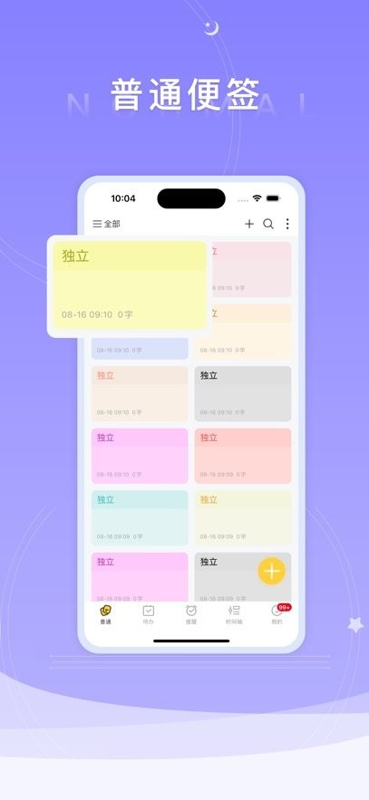 「分类」普通,待办、提醒、时间轴四种便签