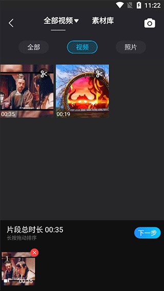 2、选择你要添加背景音乐的视频,点击【下一步】;