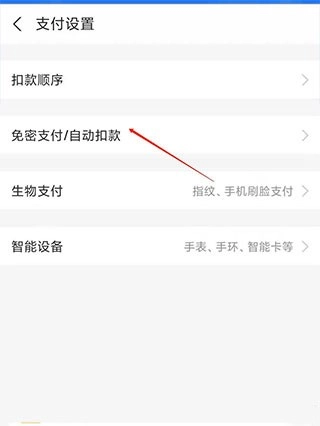 2、在设置中点击【支付设置】,选择【免密支付】。