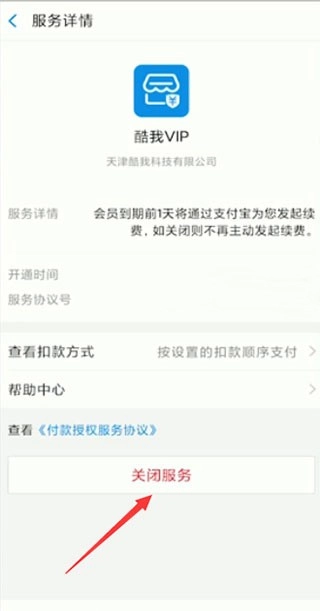 5、进入【管理我的自动续费】页面后,找到页面里的【关闭】按钮,点击后完成确认操作即可。