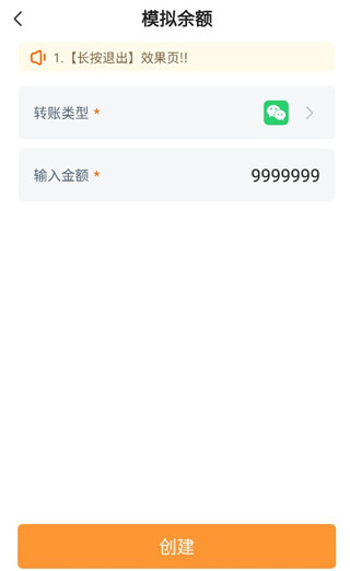 我们可以先试试模拟余额的功能,输入自己想要设定的金额,接着点击创建按钮就行啦。