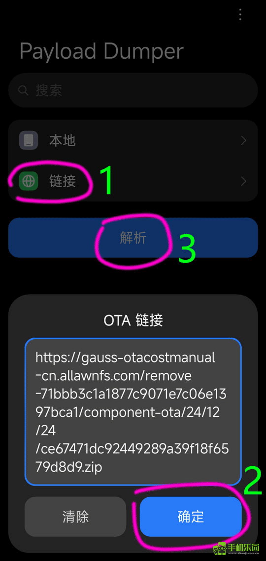 3、启动Payload Dumper工具:复制系统包链接并粘贴进去,然后进行解析操作。